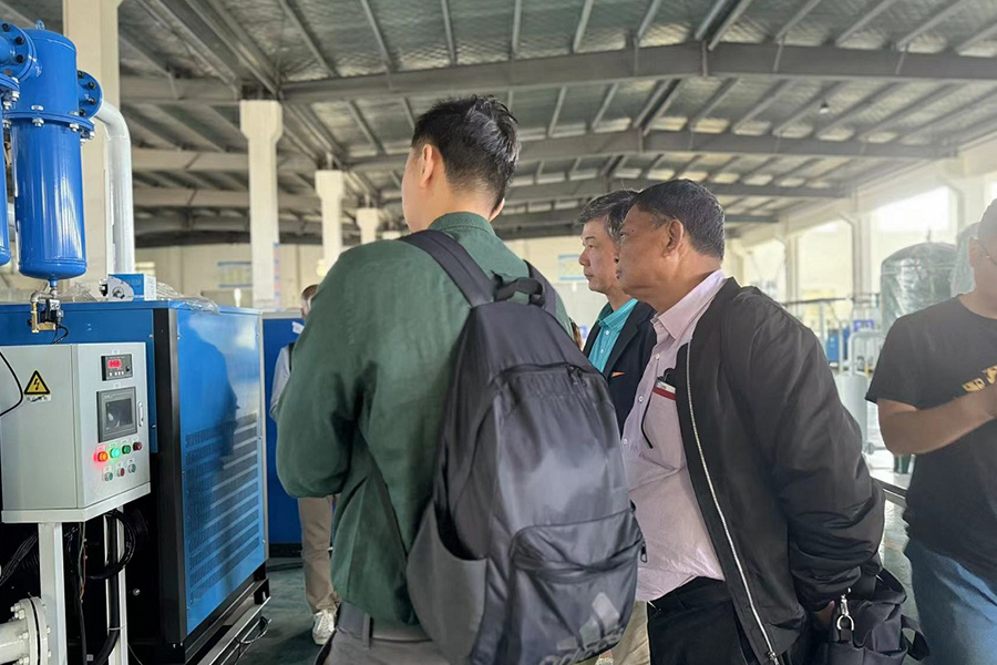 Như trong các bức ảnh, ông chủ của công ty chúng tôi đã thể hiện lòng hiếu khách nồng hậu đối với khách hàng trong suốt chuyến tham quan. Ông chủ của chúng tôi, một kỹ sư có 25 năm kinh nghiệm trong lĩnh vực thiết bị tách khí, đã trình bày chi tiết về thiết bị của chúng tôi cho khách hàng. Để nâng cao niềm tin của khách hàng, chúng tôi đã khởi động thiết bị tại chỗ, cho phép khách hàng quan sát trực tiếp độ tinh khiết của máy tạo oxy. Các khách hàng bày tỏ sự chấp thuận hoàn toàn của họ đối với thiết bị của chúng tôi.