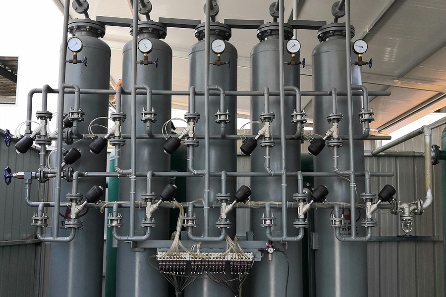 Khí thô đi vào một bộ thiết bị hấp phụ, được hấp phụ, làm khô và đưa qua bộ lọc đến nơi sử dụng. Lấy một lượng khí sản phẩm và tái tạo các sàng phân tử bão hòa đã hấp phụ trong một bộ chất hấp phụ khác ở nhiệt độ 250°C-300°C. Hai bộ chất hấp phụ hoạt động và quá trình tái sinh được thực hiện luân phiên. Có thể thu được khí sản phẩm liên tục và ổn định.